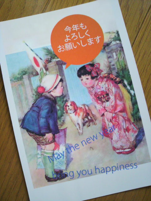 まだ終わらない… まだ年賀状作ってます。イツデキルノーっこれはリア友用。結局自分のリア友のも、この絵を使うことにした。昨夜はプリンターが突然動かなくなってちょぉぉぉおお焦った!こんな暮れにプリンター故障とかどーすることもできないよーもう、買い替えなきゃかと焦ったけれど…ついついデキゴコロで・・・リサイクルインク入れちゃったのが原因らしい。しかしエプ○んの拒否っぷりがスゴすぎてヒク!ずーっと純正品使ってたのに…ついつい。純正品買いに行って入れ直したら治った。ホっ