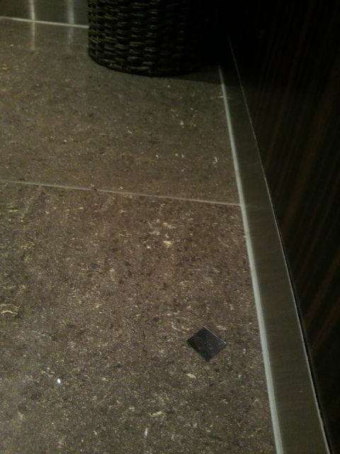 銀色のかけらが床に…