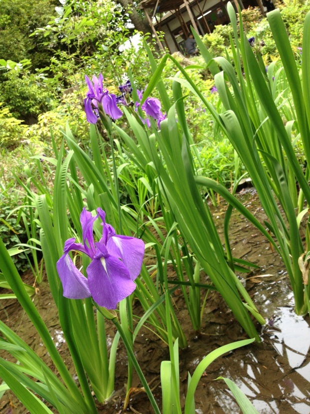 古いお寺と 一面のカキツバタと、