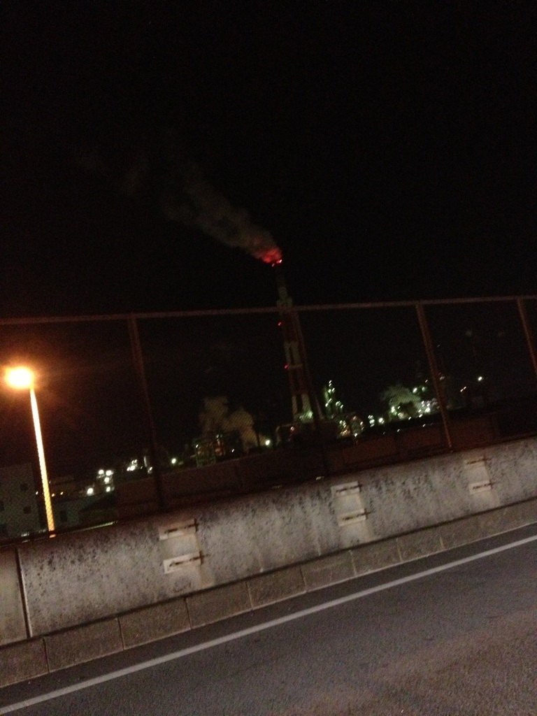 四日市のコンビナート付近を通過中…