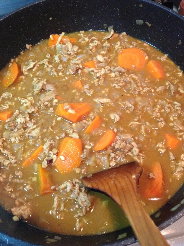 今夜はカレーだよ☆ Dちゃんは、サラサラカレーだと、ニコニコして食べる。ドロドロカレーだと、大喜びでガツガツ食べる。いやしかし…今夜のご飯がカレーだと知って、マンションの廊下でスキップする大人の男は、いまだかつてDちゃんしか見たことないwww ぷあ。私がじゃがいも煮込んだのキライだから、ポテぃ〜トは、あとから焼いて、のっけます