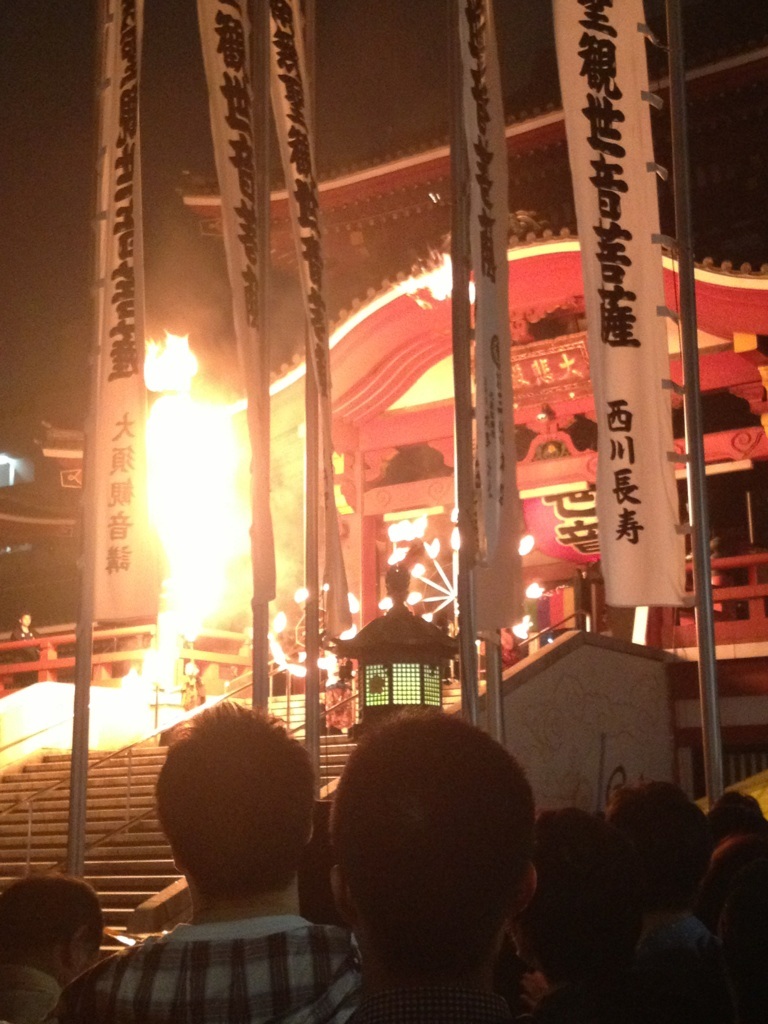 大須観音で、ファイヤーダンス。