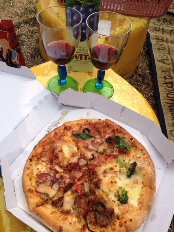 ピザとワイン持って