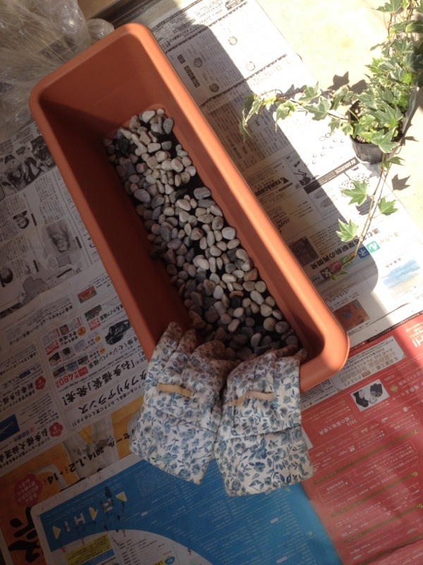 ベランダの植え替え作業に