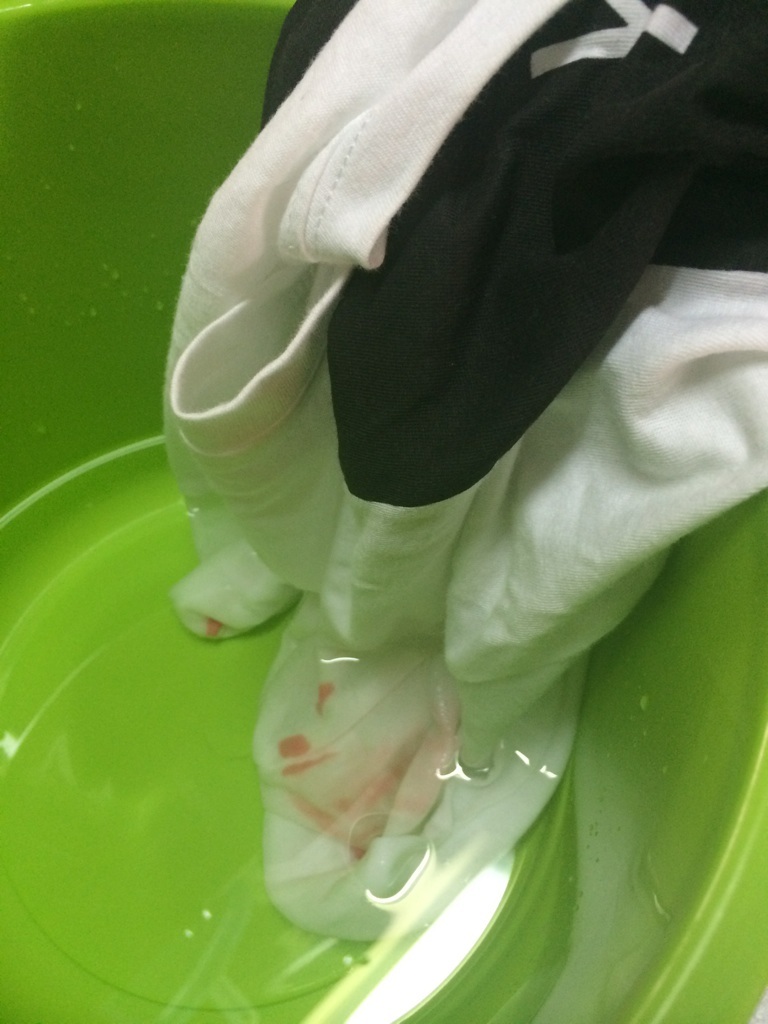 何やら黄緑のシミがあったから、キッチンハイターに付けてみたら、