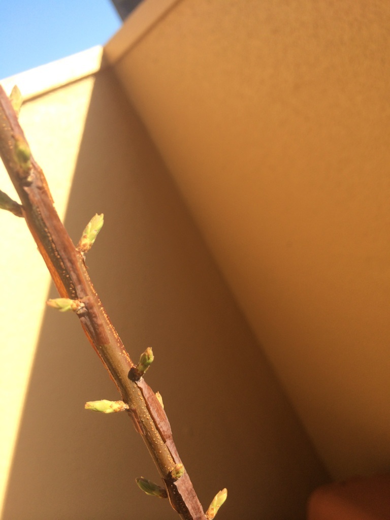 もう、てっきり枯れちゃったんだと思って、処分しようと思ってた枝から 新芽が出てきたぁ