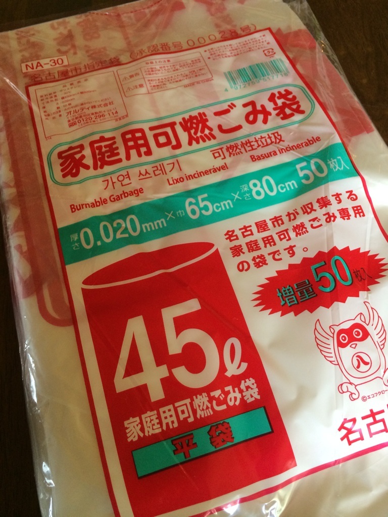 私は、名古屋市のごみ袋を買う時、