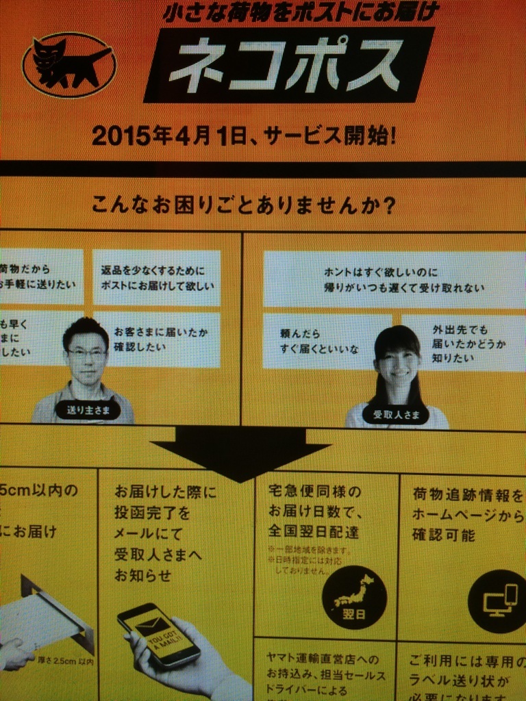 なんかネコポスってので届くみたいだけど、「翌日配達」って書いてあるから、大丈夫かな…