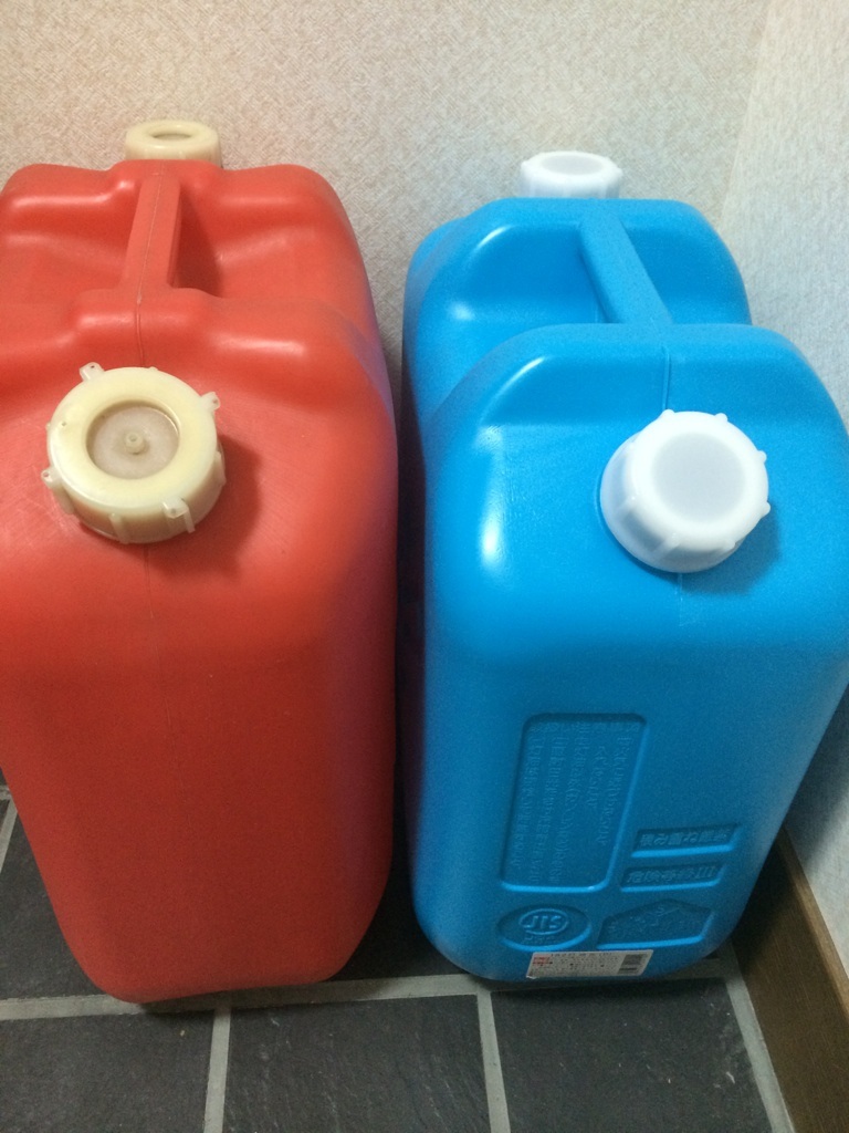 広島で灯油のポリタンク買い足したら、2色になっちゃったw