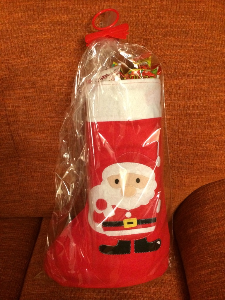 サンタさん 昨日。ピンポンも鳴らさず、足音も消してそーっとサンタが家に忍び込んできて すごいビビったwww包丁持ったまま腰抜かしそうになったじゃんかーやめてーなーんか壁の方からガサガサ音がすると思ったら、これよ。大昔のJR東日本か!←爆